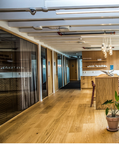 Bergen Prosjekt og Sotra Entreprenør AS utførte tømrer- og systeminnrednings- arbeidet.