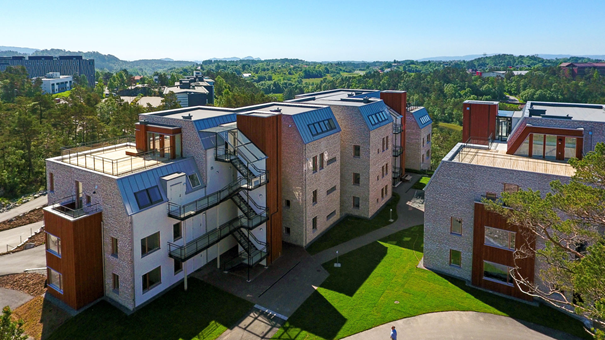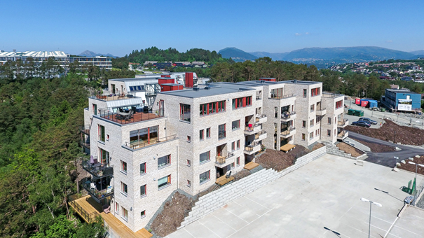 Rundt blokkene er det fint opparbeidete uteområder med isådde gressfrø. Flere murer ber utført med naturstein. Sorteringsgrad for byggavfall er 81 prosent.